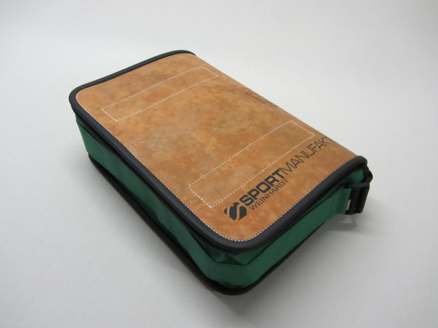 Unsere SMW-Taschen werden noch in echter Handarbeit aus einem Mix von unterschiedlichen ausrangierten Sportgeräten (Turnbock, Boxsäcken, Turnmatten, Zugmanschetten, Turnkästen, Sprungpferd, Schwebebalken, etc.) und neuen Sportgerätematerialien handgefertigt.